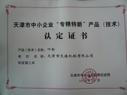 我公司研制生产的“叶轮”,再次被天津市中小企业发展促进局认定为“专精特新”产品!
